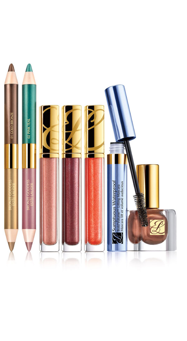 Τα Lip Gloss Pure Color Gloss σε ζουμερές απόχρώσεις (23Ε) τα limited edition Pure Color βερνίκια νυχιών (21E) η μάσκαρα για όγκο Sumptuous Mascara (33E) και βέβαια τα διπλά μολύβια σκιές, Bronze Goddess ShadowStick Duos στις θερμές αποχρώσεις Gold Bronze και στις ψυχρές Pink Teal. Αυτά είναι ίσως τα αγαπημένα μου της καλοκαιρινής συλλογής και τα βρίσκω ιδιαίτερα εύχρηστα γιατί τα χρησιμοποιώ και σαν μολύβια ματιών αλλά και σαν σκιές για ένα γρήγορο πρωινό καλοκαιρινό μακιγιάζ. Το καλύτερο δε είναι ότι επειδή είναι αδιάβροχα δεν λιώνουν και δεν μαζεύουν όσο και αν ιδρώσω το καλοκαίρι!