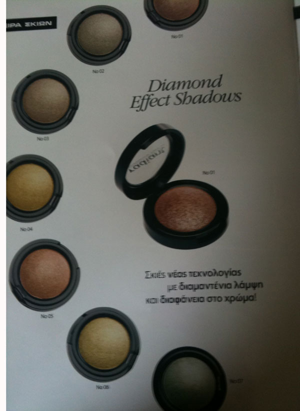 Πάντως, το σταρ προϊόν της ανοιξιάτικης συλλογής είναι οι σκιές Diamond Effect Shadows, πολύ λαμπερές αλλά με διάφανο και όχι βαρύ αποτέλεσμα, που πραγματικά δίνουν απίστευτη λάμψη και εγώ νομίζω ότι θα είναι απίθανες σε λίγο μαυρισμένο δέρμα: