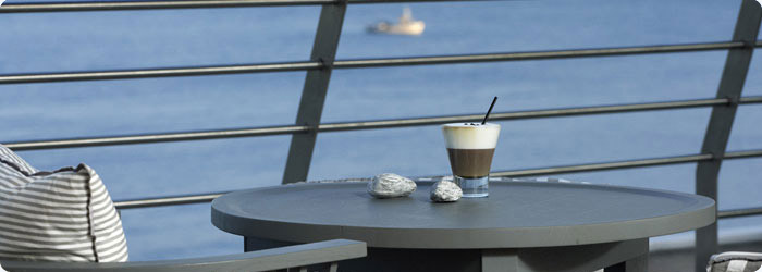 η φωτογραφία με τον καφέ στο μπαλκόνι μπροστά στη θάλασσα μου θυμίζει τί σημαίνει διακοπές και χαλάρωση!