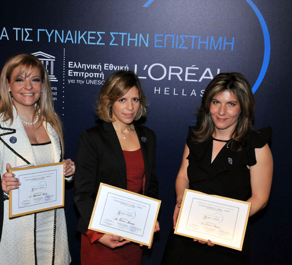 Από το 2006, η L’oreal Hellas και η Ελληνική Εθνική Επιτροπή για την Unesco βραβεύουν κάθε χρόνο με τα «Ελληνικά Βραβεία L’Oreal Unesco» 3 νεαρές Ερευνήτριες ηλικίας μέχρι 38 ετών στους κλάδους των Βιοεπιστημών και των Φυσικών Επιστημών. Σκοπός των Βραβείων είναι να τιμήσουν την συνεισφορά και την αφοσίωση των Ελληνίδων Ερευνητριών στην Επιστημονική Έρευνα. Δίνοντας αξία στις καινοτομίες που προσφέρουν οι γυναίκες Επιστήμονες στην καθημερινότητά μας, τα Βραβεία εκτός από την ηθική επιβράβευση, συνοδεύονται επίσης και με μια οικονομική ενίσχυση αξίας 10.000 ευρώ το καθένα που σκοπό έχει να ενθαρρύνει τις νέες Γυναίκες Επιστήμονες στη συνέχιση της ερευνητικής τους σταδιοδρομίας στην Ελλάδα. (κρίμα είναι όλα τα δυνατά μυαλά να φεύγουν από την χώρα μας…)