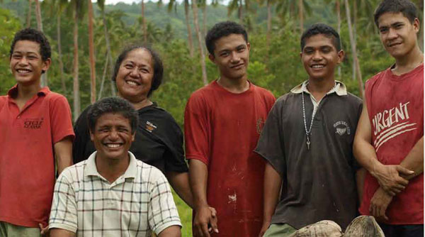 Ο Sila και η γυναίκα του Makerita ποζάρουν με τα παιδιά τους στο υπέροχο νησί Upolu, στη Samoa. Το χωριό τους, Falelatai, καταστράφηκε το 2009 από το Pacific Tsunami αλλά ήταν τυχεροί καθώς έχουν γη που βρίσκεται σε μεγάλο υψόμετρο. Η εμπορική συναλλαγή με την The Body Shop εξακολουθεί να ενισχύει την προσπάθεια ανοικοδόμησης και οι δωρεές τους έδωσαν τη δυνατότητα να αγοράσουν τα μέσα ώστε όλο και περισσότεροι αγρότες να συμμετέχουν. Μέσω του προγράμματος Δίκαιο Εμπόριο με Κοινότητες η The Body Shop πρόσφερε μία σταθερή αγορά σε περισσότερους από 200 ανθρώπους για τους οποίους θα ήταν αδύνατο να έχουν εισόδημα.