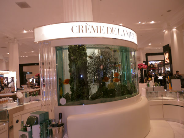 Μετά σειρά έχει το stand της Crème de la Mer και μου έκανε φοβερή εντύπωση, το εκπληκτικό ενυδρείο με αληθινά ψάρια που δέσποζε στο stand..