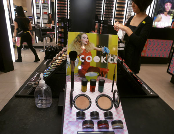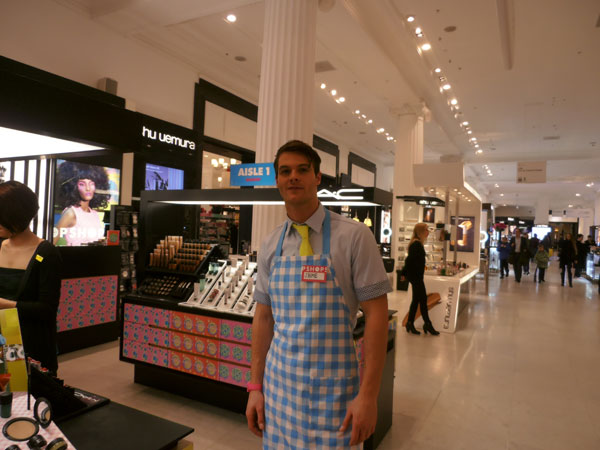 Η Mac λοιπόν και φέτος (ε, όπως πάντα…) με έχει ενθουσιάσει με το ανοιξιάτικο μακιγιάζ το οποίο εμπνέεται από τις «Χαρωπές Νοικοκυρές» της δεκαετίας του 1960.. Ξέρετε, η βλεφαρίδα κάγκελο, αλλά το ψητό, ψητό ένα πράγμα. Σκεφτείτε «Stepford Wives” και αμέσως θα μπείτε στο πνεύμα τις κολεξιόν. Η μια κολεξιόν είναι η Shop και η άλλη η Cook (δηλαδή, Shop and Cook…) Απίθανα φλούο χρώματα, κραγιόν και ρουζ σαν τσικλόφουσκες, θα τα δείτε στις φωτογραφίες… Εκεί όχι μόνο με άφησαν να τραβήξω φωτογραφίες, αλλά στα ψώνια, βεβαίως, βεβαίως, με την απίθανη ποδίτσα του και πάλι βεβαίως, βεβαίως, σε βοηθάει ο (γκουχ, γκουχ, γκουχ…) ο Jam e…Ω, ναι… ο Jame… και εγώ βέβαια του ζήτησα να του τραβήξω μια φωτογραφία και ευγενέστατος δεν μου είπε όχι (τον αδικεί η φωτό, είναι κούκλος…)