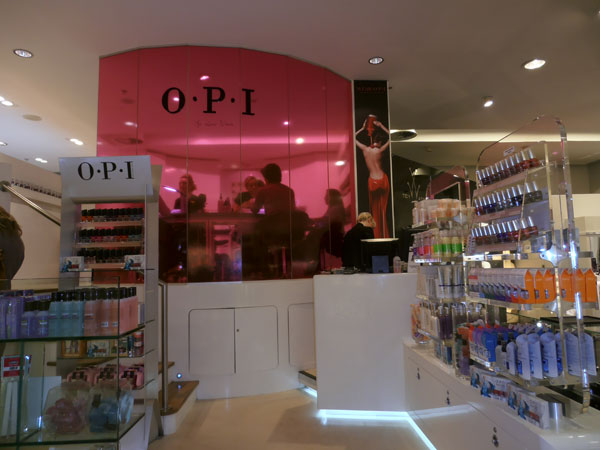 Μετά πέρασα από την OPI όχι μόνο διότι στο Selfridges έχει μια από τις πιο πλούσιες συλλογές προϊόντων αλλά γιατί ήθελα να σας δείξω το nail salon, αν και ο χώρος είναι πολύ μικρός, μόνο δύο τρεις, μπορούν να κάνουν τα νύχια τους την φορά- είναι εξαιρετικά γουστόζικος με ροζ πλεξιγκλάς γύρω-γύρω..