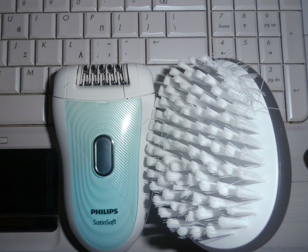 Kατ’ αρχήν (μην το πείτε αυτό παραέξω) δεν ξύρισα τα πόδια μου για.. κάποιες μέρες… (ε, τι πείραμα θα έκανα;). Μετά από (περίπου) μια εβδομάδα, έβγαλα την μηχανή από τη θήκη της. Η συσκευασία περιείχε ακόμα, τον φορτιστή (μια χαρά, την φορτίζεις και τελειώνεις) και ένα πολύ έξυπνο ειδικό βουρτσάκι απολέπισης, το οποίο από ότι διάβασα στο Δελτίο Τύπου, προετοιμάζει κατάλληλα το δέρμα αφαιρώντας τα νεκρά κύτταρα και εμποδίζοντας την τρίχα να αναπτυχθεί εσωτερικά της επιδερμίδας. (ξέρετε οι απαίσιες in grows τριχούλες, αυτές που φυτρώνουν από μέσα προς τα έξω…) Έτσι, όπως διάβασα, «διασφαλίζεται η αποτελεσματική αποτρίχωση καθώς η τρίχα μεγαλώνει προς την σωστή φορά του δέρματος μειώνοντας τους ερεθισμούς». Επίσης η συσκευασία περιέχει και ένα εξάρτημα για μασάζ κατά την διάρκεια της αποτρίχωσης καθώς και ένα ειδικό κάλυμμα για την αποτρίχωση στις ευαίσθητες περιοχές Μια χαρά μέχρι εδώ.