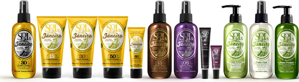 Στη σειρά θα βρείτε λάδια με χαμηλό δείκτη προστασίας SPF 6 για τροπικό μαύρισμα (αφού πρώτα έχετε πάρει λίγο χρώμα με υψηλότερη προστασία, να θυμάστε πάντα ότι ο ήλιος γερνάει..) γαλακτώματα με υψηλούς δείκτες προστασίας, After sun lotions για περιποίηση μετά τον ήλιο, αντηλιακή λοσιόν με δείκτη προστασίας για τα μαλλιά αλλά και ένα πολύ εξειδικευμένο προϊόν με δείκτη προστασίας 50 το οποίο θα λατρέψετε όσες έχετε τατουάζ, διότι όχι μόνο τα προστατεύει από το να ξεθωριάσουν αλλά τα κάνει τα δείχνουν ακόμα πιο λαμπερά και έντονα (Αχ, αυτοί οι Βραζιλιάνοι… όλα τα σκέφτονται…)