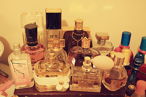 @Βασιλική: κάτω αριστερά είναι το Japanese Cherry blossom του Bodyshop, δίπλα είναι Daisy, miss dior cherie, flowerbomb, red door, επάνω, kate moss,hilary duff, vera wang princess,δεξιά κάποια escada νομίζω και στο βάθος πίσω estee pure white linen, No.5 (Μάλλον το bath oil), diesel & ralph lauren romance.