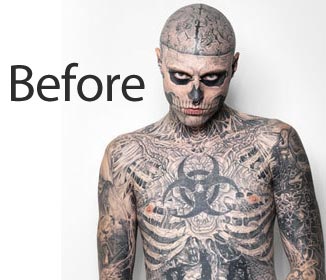 Για να δείξει την κάλυψη που προσφέρει η σειρά (τα προιόντα, foundation και concealer, καλύπτουν κάθε ατέλεια, κάθε σημάδι, δερματολογικά προβλήματα, ακόμα και tattoos και σύμφωνα με την εταιρεία έχουν έχουν διάρκεια 12 ωρών) η Dermablend επιστράτευσε, τον άνθρωπο που έγινε σούπερ διάσημος, λόγω των tattoo του και ο οποίος δεν είναι άλλος από τον Rico the Zombie.