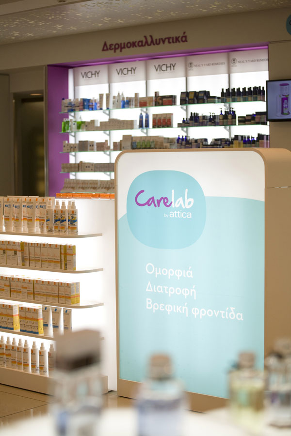 Το Carelab by attica αποτελεί ένα πρωτοποριακό concept αφού για πρώτη φορά σε Ελληνικό πολυκατάστημα δημιουργείται ειδικό τμήμα αφιερωμένο στη φροντίδα όλης της οικογένειας, με την επιστημονική συμβουλή φαρμακοποιών, που είναι πρόθυμοι να ακούσουν ή να διαγνώσουν τις ανάγκες σας και να σας προτείνουν τα κατάλληλα προϊόντα. Επιπλέον, εξειδικευμένοι επιστήμονες υγείας και διατροφολόγοι είναι στη διάθεσή σας για να σας ενημερώσουν με εγκυρότητα πάνω σε θέματα διατροφής και να σας αναλύσουν με λεπτομέρειες όλα τα προϊόντα διατροφής που θα βρείτε στο Carelab by attica. To Carelab by attica θα ανοίξει και στo attica στην Πανεπιστημίου στο τέλος του Οκτωβρίου.