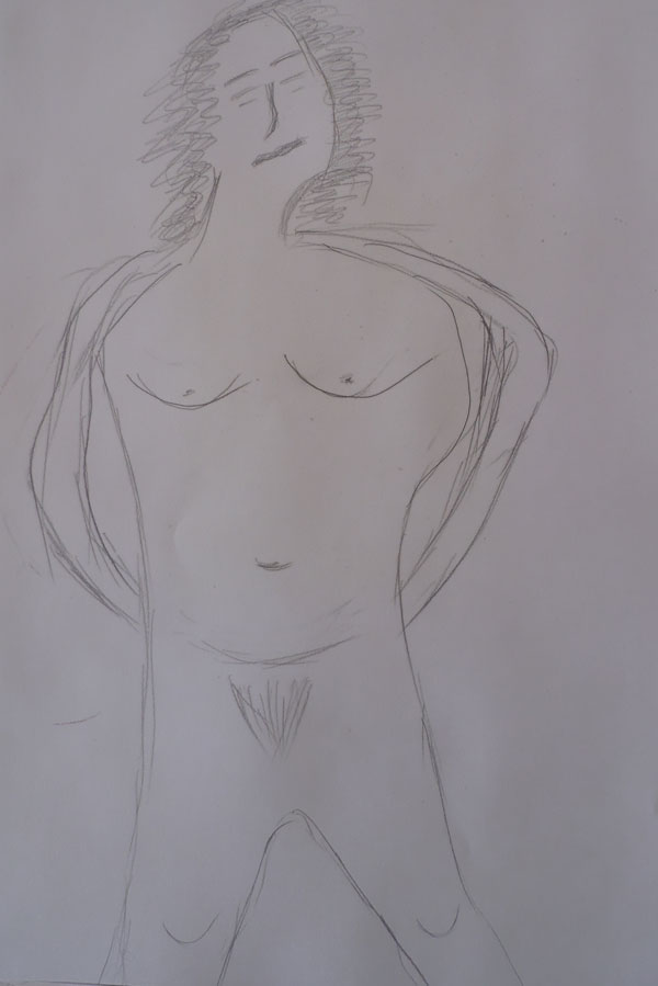 Ξεκινώ λοιπόν με το σκίτσο της γυναίκας (ο Θεός να την κάνει) και είπα να του το περάσω, λίγο naïve, λίγο Τσαρουχικό… λίγο και καλά με άποψη, τέλος πάντων…