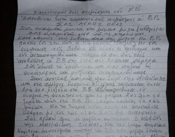 Θα τελειώσω με κάτι που έγινε προχθές.. στην εκπνοή δηλαδή… Κατέφθασε, περίχαρος και περήφανος ο κύριος Ντίνος aka μπαμπάς, ένα απόγευμα για να δει τον Ρωμανό του και έβγαλε με στυλ από την τσέπη, χειρόγραφο σημείωμα.