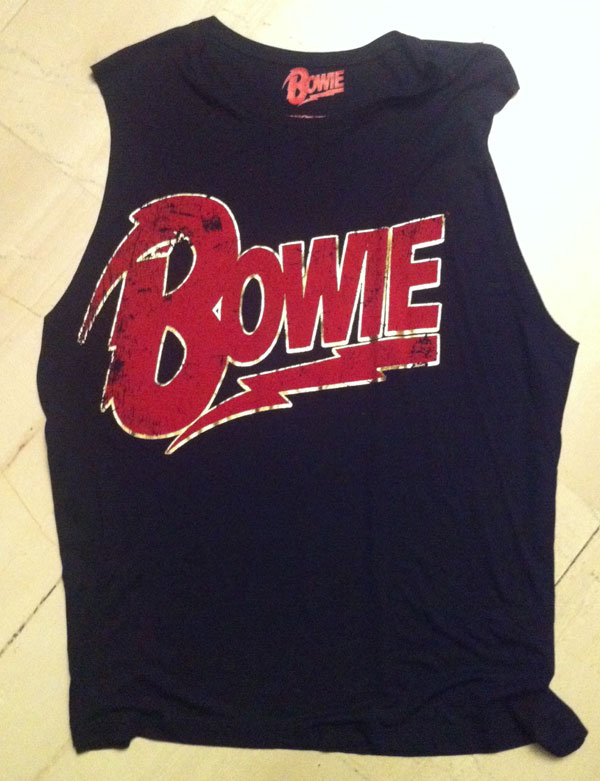 Tι περιμένουμε, τον 21ο αιώνα; Στάμπες, σλόγκαν, σχέδια, χιούμορ και ειρωνεία. Όσο για μένα, απλά να σας δείξω, αυτό το αμάνικο μαύρο t-shirt, αναφορά στον αγαπημένο Bowie, που έφερα μαζί μου από το Λονδίνο και δεν βλέπω την ώρα να το βάλω…