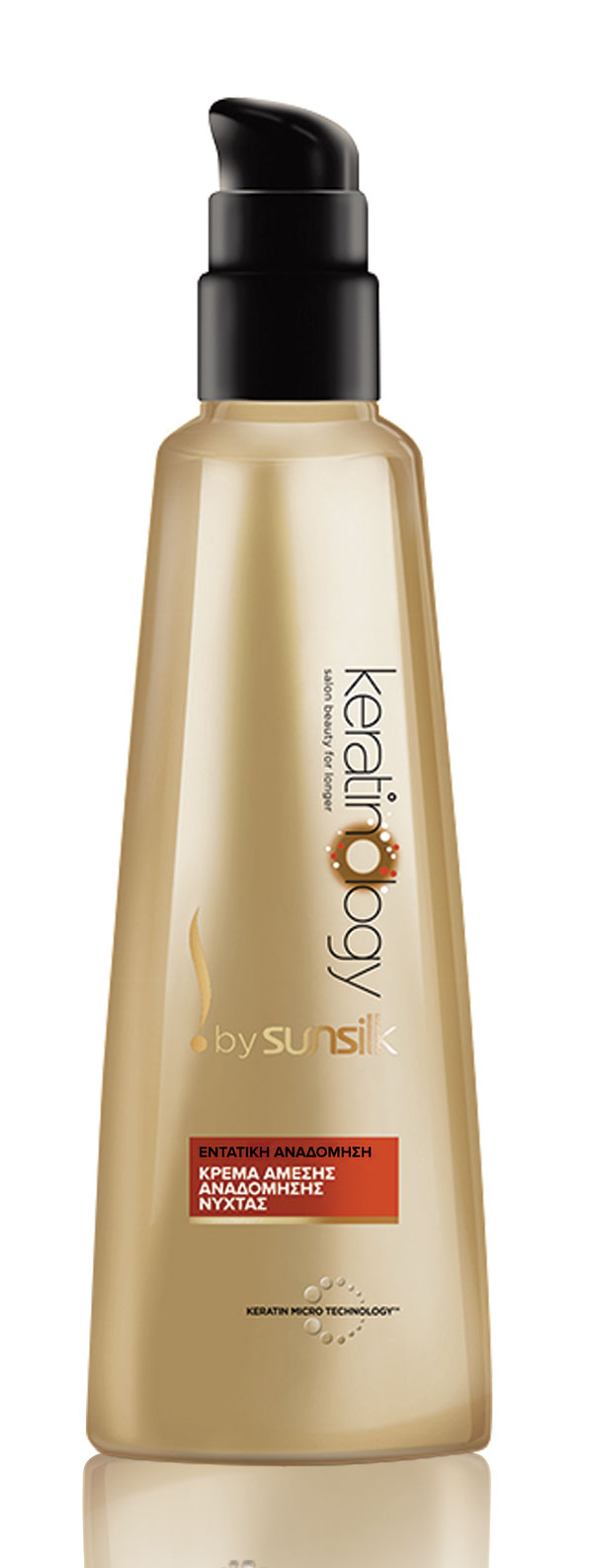 Κρέμα Άμεσης Αναδόμησης Νύχτας “Εντατική αναδόμηση, KeratinologybySunsilk” , για ξηρά, ταλαιπωρημένα μαλλιά. 150 ml