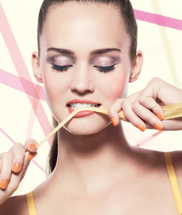 Πολύ όμορφο, πολύ φρέσκο, πολύ κολακευτικό ανοιξιάτικο μακιγιάζ. Όλα μου αρέσουν: Η σκιά, το ρουζ, το κραγιόν, το βερνίκι νυχιών, όλα, όλα!
