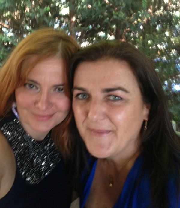 Τέλος ήθελα να σας πω ότι προχθές στον γάμο κάθισα σε ένα τραπέζι και μετά από λίγο, μια κοπέλα που καθόταν δίπλα μου, μου έκανε κομπλιμέντο για την απόχρωση των μαλλιών μου. Ξεκίνησα λοιπόν και εγώ να διηγούμαι το «ποιηματάκι» της κόκκινης μάσκας Mod’s Hair, για να με σταματήσει κάποια στιγμή η κοπέλα ευγενικά και να μου πει: «Μη μου διηγείσαι όλη την ιστορία Τζούλια, την ξέρω την διάβασα, στο bb… βλέπεις, είμαι και εγώ bb girl!!”» Ωωωω ενθουσιασμός, έβγαλα και μια φωτογραφία μαζί της, τη βλέπετε από κάτω και επίσης σε αυτή τη φωτογραφία, μπορείτε να δείτε τα μαλλιά μου, που έπειτα από τέσσερα λουσίματα, το κόκκινο χρώμα τους δεν είναι πια τόσο έντονο (ακριβώς δηλαδή αυτό που μου είχαν πει τα παιδιά της Mod’s Hair..) αλλά εγώ έχω πάρει σπίτι μου τη μάσκα Copper Red και την Παρασκευή θα την ξανακάνω… λέω να κρατήσω για λίγο καιρό ακόμα, τα κόκκινα μαλλιά μου…Τι λέτε bb girls, συμφωνείτε; Να τα κρατήσω ακόμα κόκκινα;