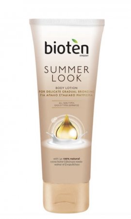 Τέλος όσο αφορά τα προϊόντα για σταδιακό μαύρισμα η βασική ενυδατική τους φόρμουλά «ενισχύεται» από παράγοντες self tan ώστε να χαρίζουν σταδιακό μαύρισμα στην επιδερμίδα. Ειδικά για τις αρχάριες στο κεφάλαιο «self tan» η συγκεκριμένη κατηγορία είναι η ιδανική επιλογή- κυρίως γιατί συγχωρεί… την αδεξιότητα του πρωτάρη. Δοκιμάστε το Bioten Summer Look Body Lotion