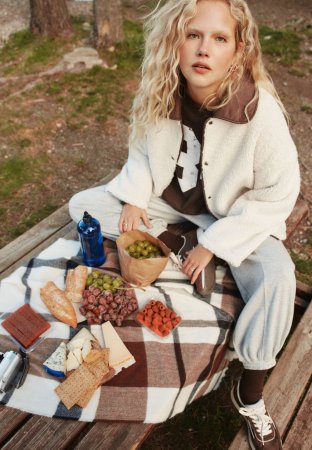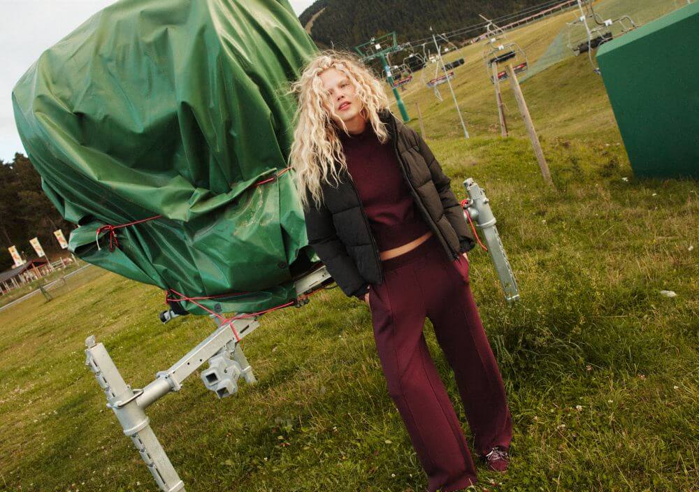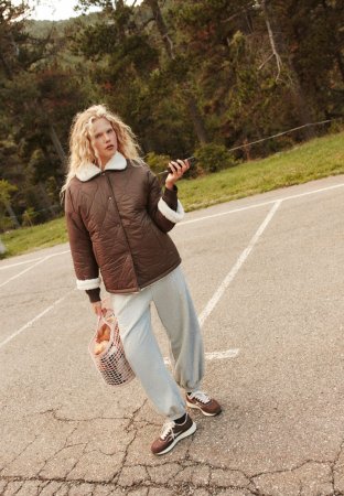 Η συλλογή περιλαμβάνει κομμάτια όπως διπλής όψης καπιτονέ μπουφάν σε συνθετικό δέρμα προβάτου ή κοτλέ, παρκά και κολάν με απαλή υφή σε φθινοπωρινές αποχρώσεις όπως πράσινο, μπορντό, μπλε σκούρο και μαύρο.