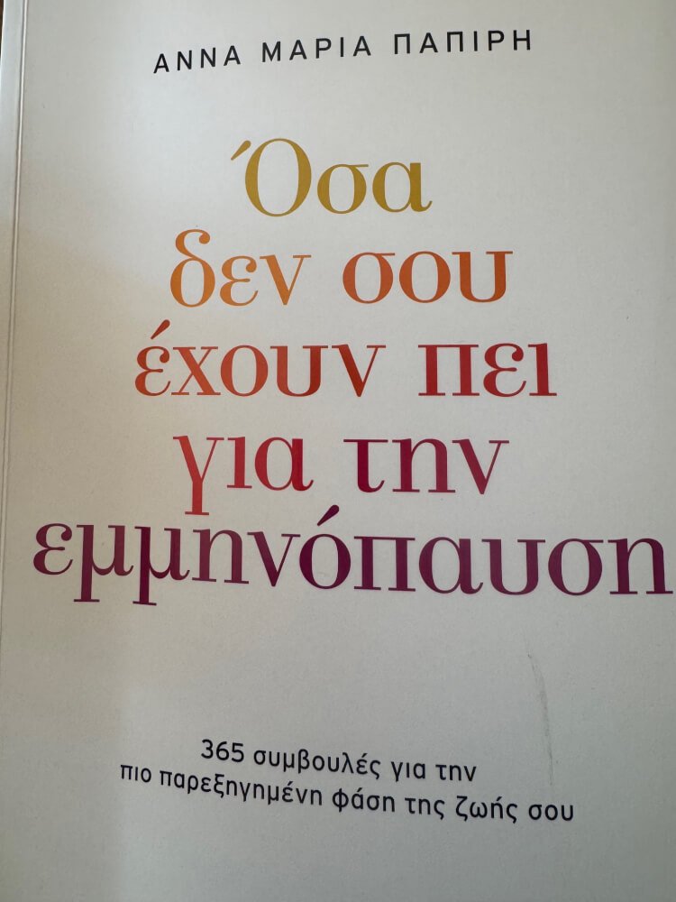 Κάπως έτσι ξεκινάει το νέο βιβλίο της αγαπημένης μου φίλης και συναδέλφου Άννας Μαρίας Παπίρη ένα βιβλίο με όλα όσο θέλετε να μάθετε για την περίοδο της εμμηνόπαυσης στη ζωή μιας γυναίκας. Ένα βιβλίο βιωματικό, πλούσιο σε υλικό, καλογραμμένο με δεκάδες tips και συμβουλές που θα βοηθήσει κάθε γυναίκα που ξεκινά αυτό το νέο κεφάλαιο.